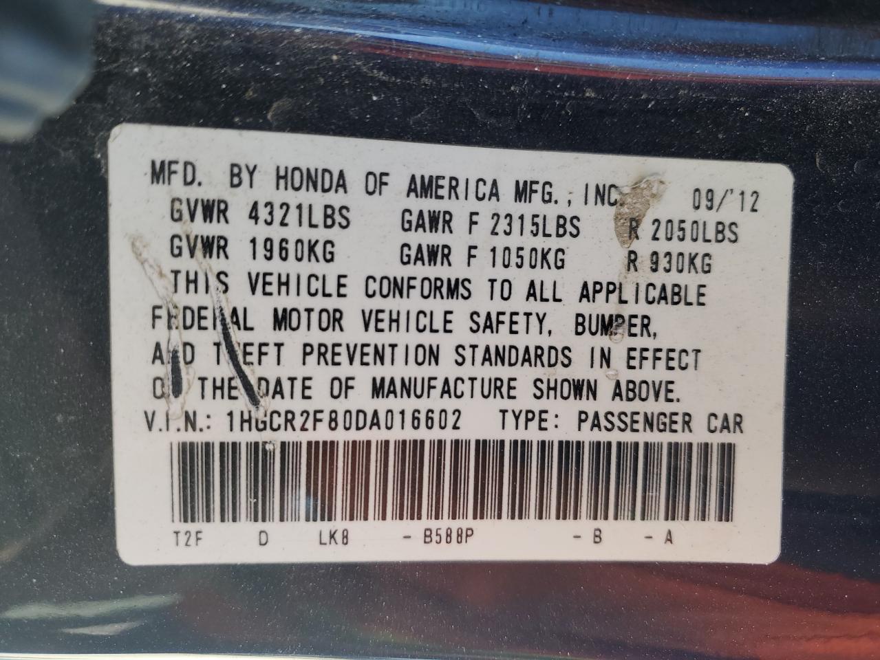 - ВИН: 1HGCR2F80DA******