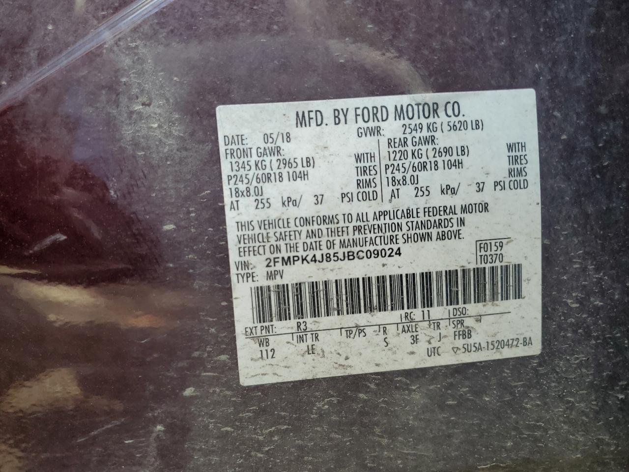 - ВИН: 2FMPK4J85JB******