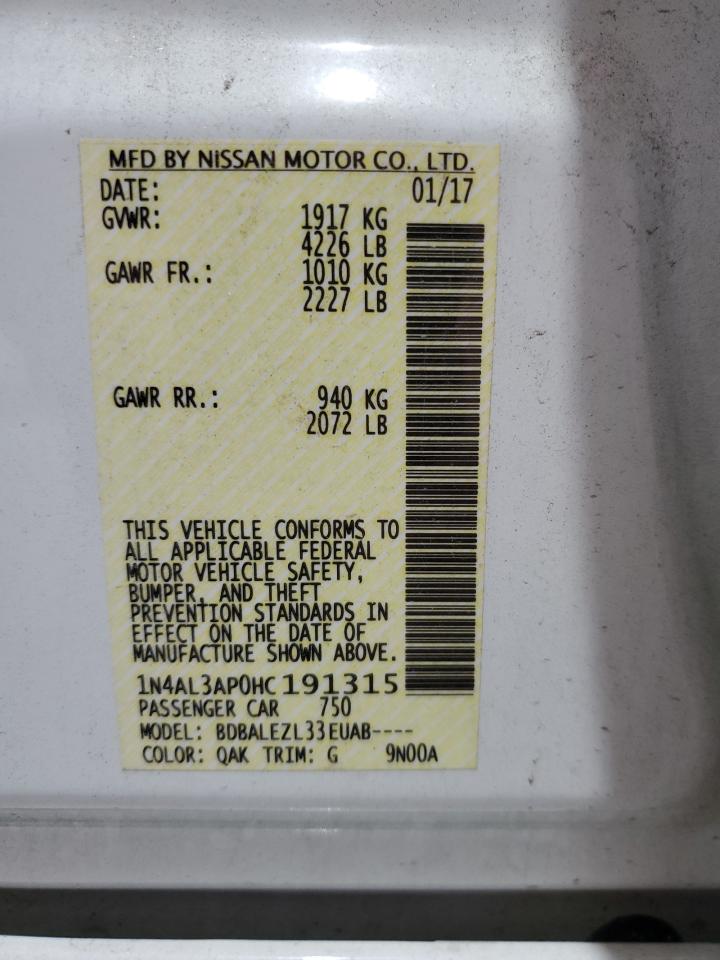- ВИН: 1N4AL3AP0HC******