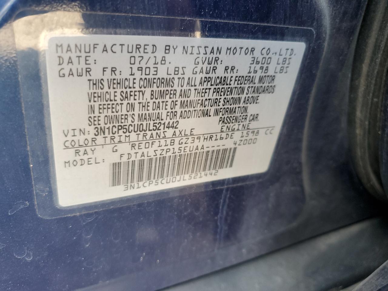 - ВИН: 3N1CP5CU0JL******