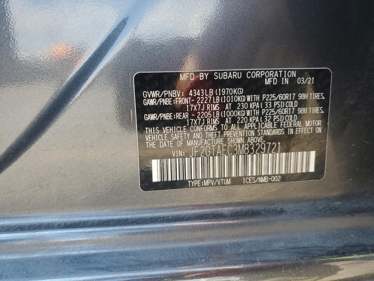 - ВИН: JF2GTAEC3M8******