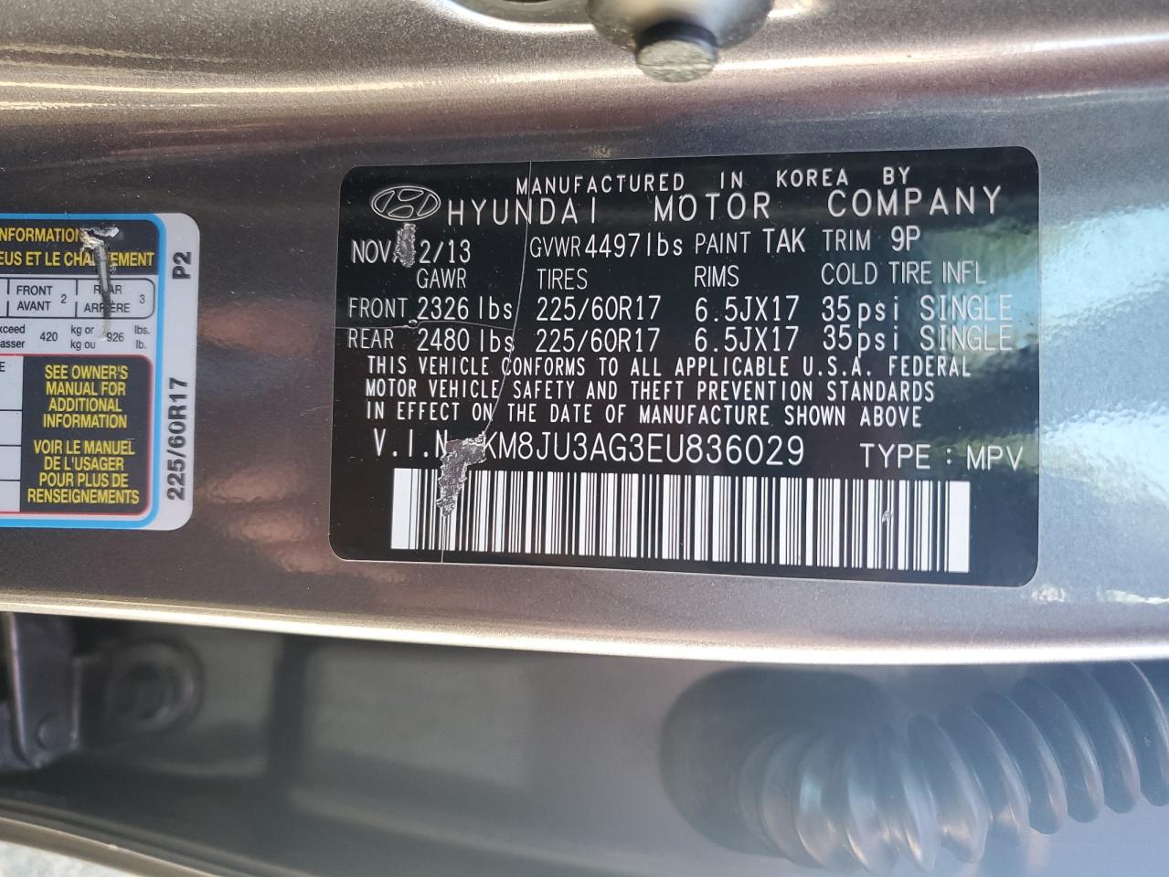 - ВИН: KM8JU3AG3EU******