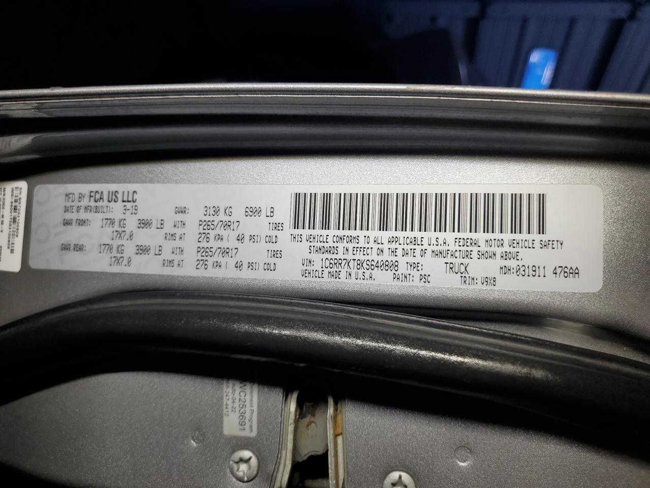 - ВИН: 1C6RR7KT8KS******