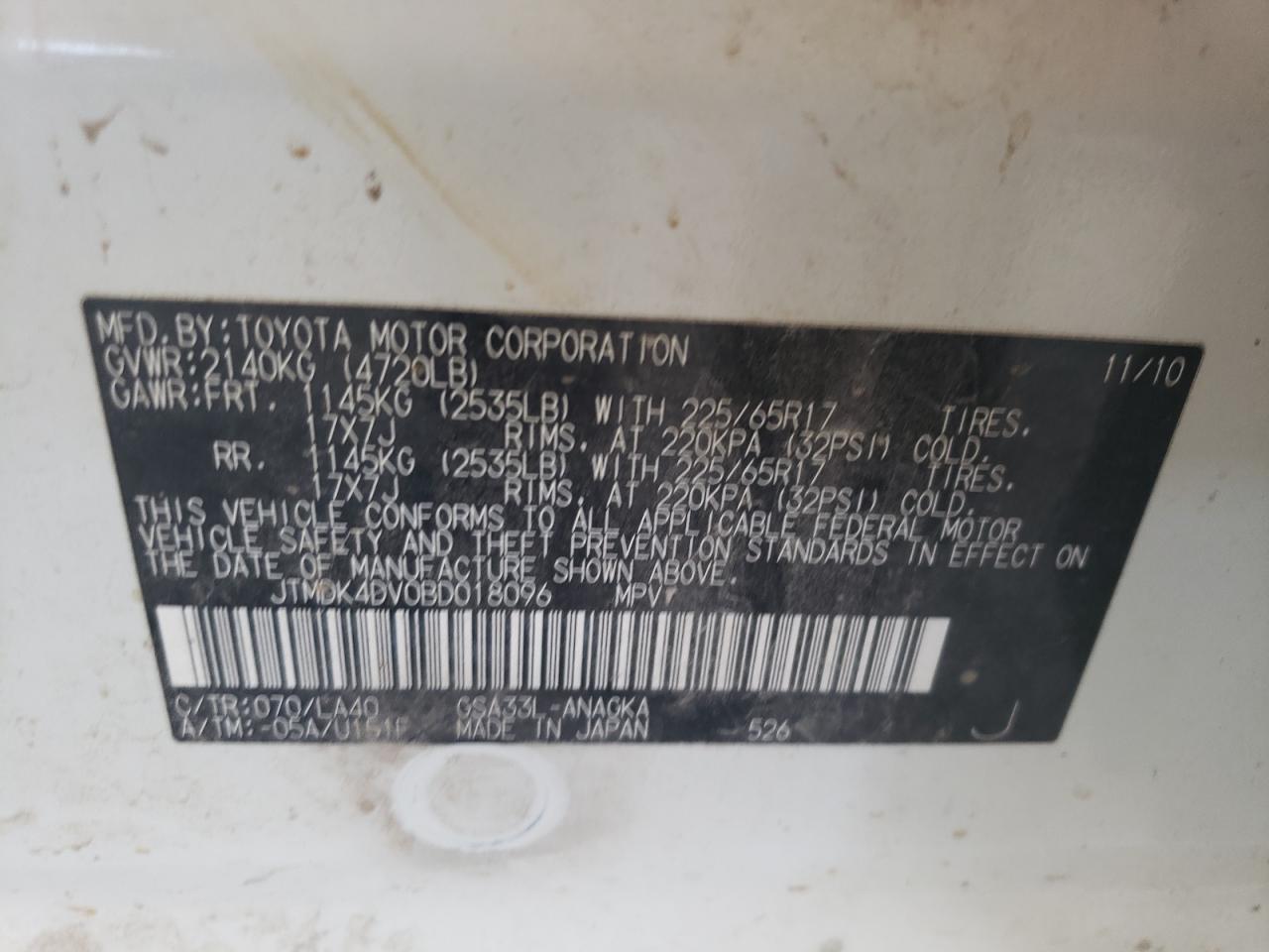 - ВИН: JTMDK4DV0BD******