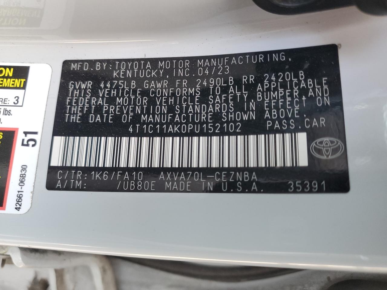 - ВИН: 4T1C11AK0PU******