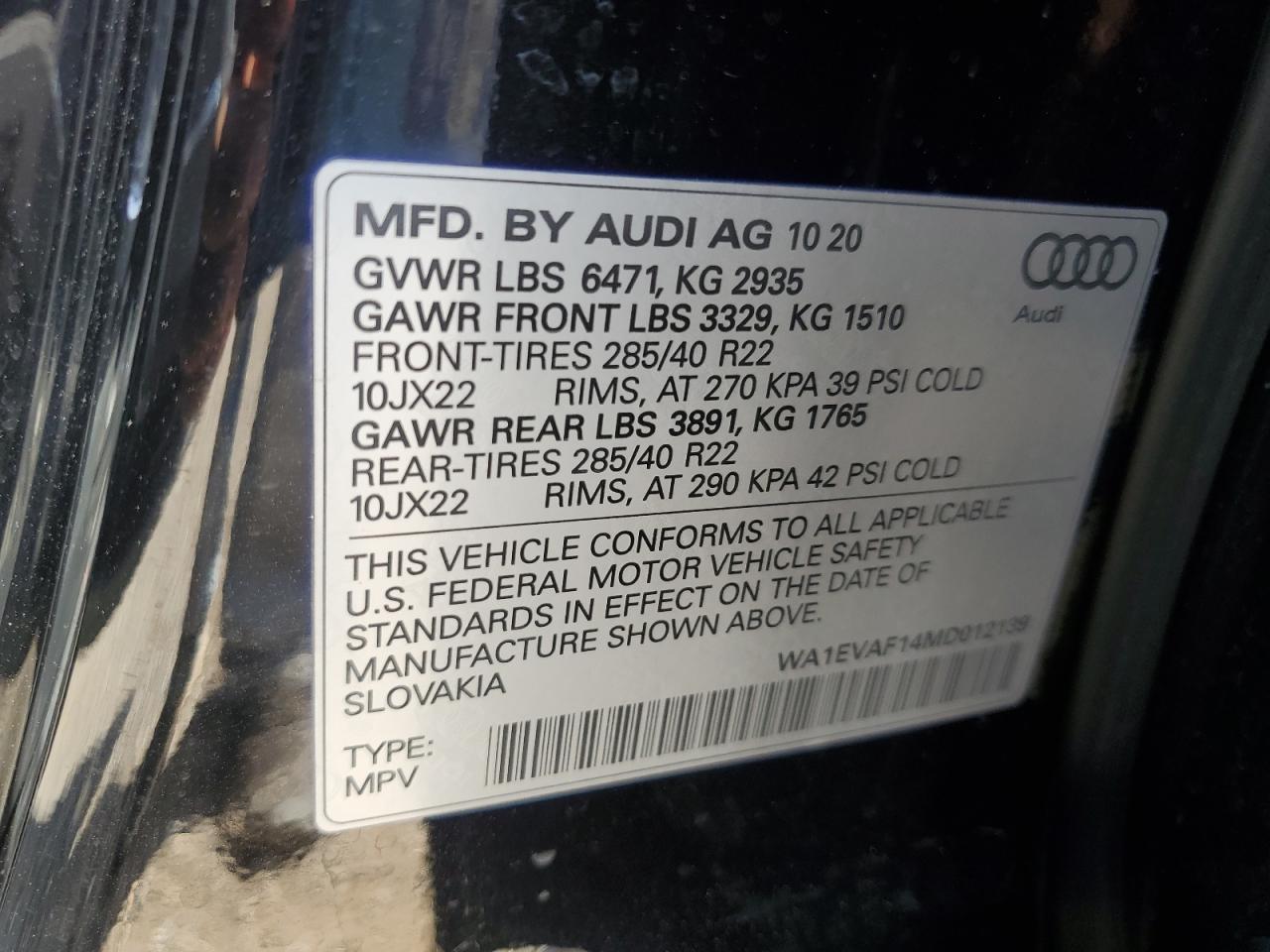 - ВИН: WA1EVAF14MD******