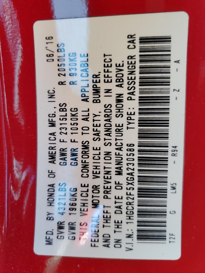 - ВИН: 1HGCR2F5XGA******