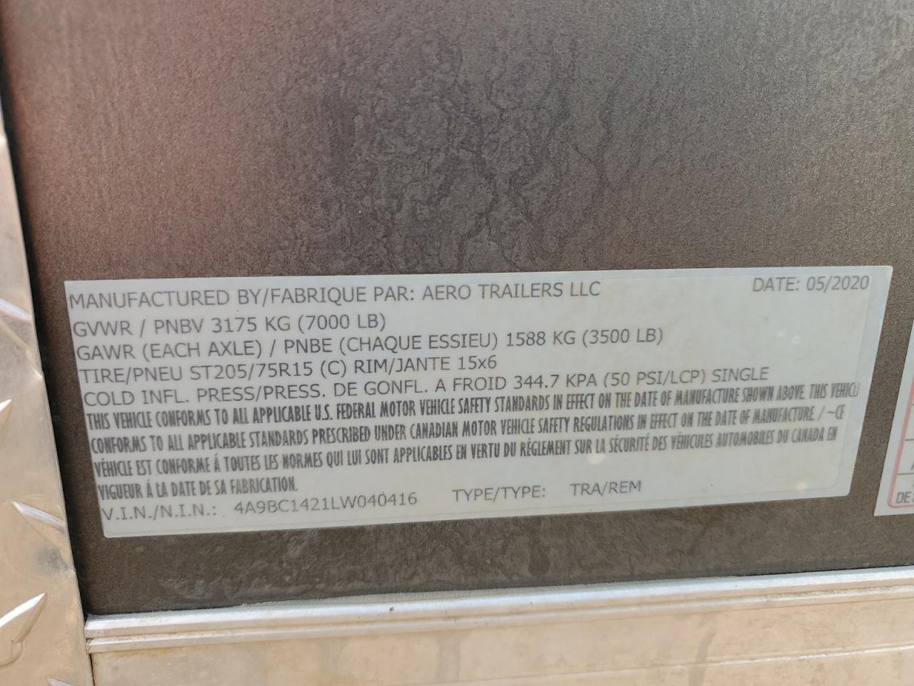 2020 AERO ENCLOSED CARGO TRAILER из США