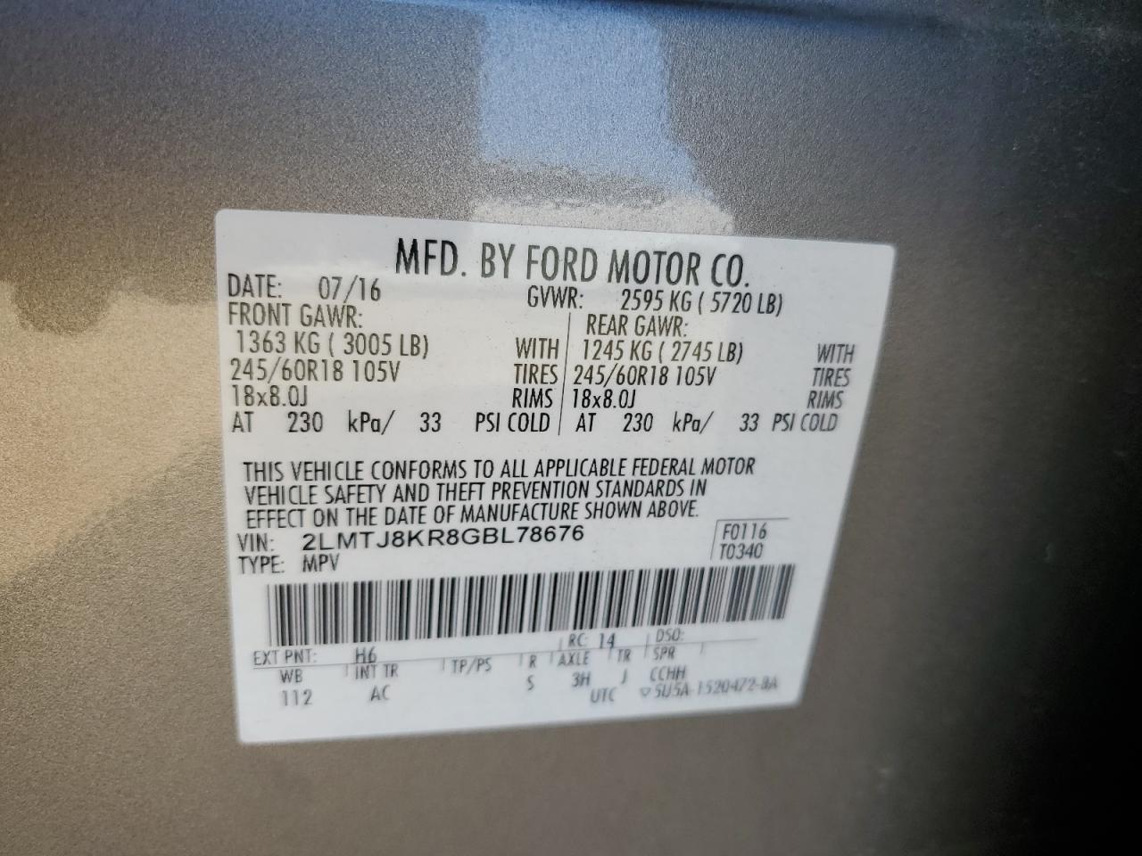 - ВИН: 2LMTJ8KR8GB******