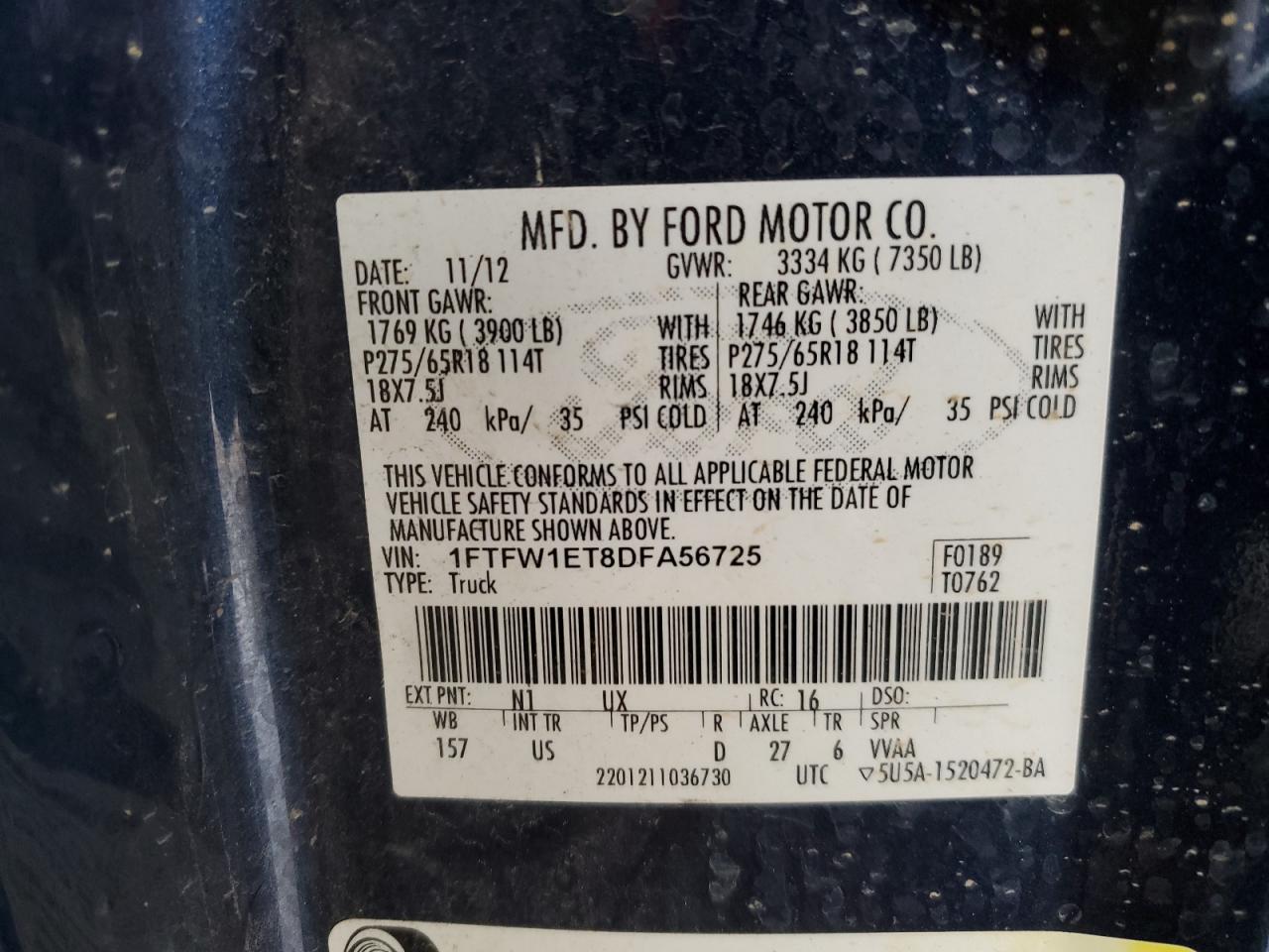 - ВИН: 1FTFW1ET8DF******