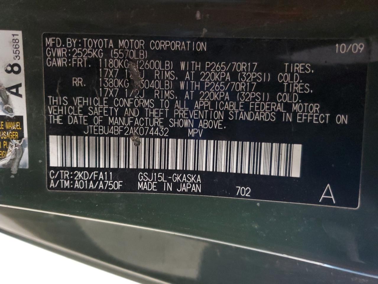 - ВИН: JTEBU4BF2AK******