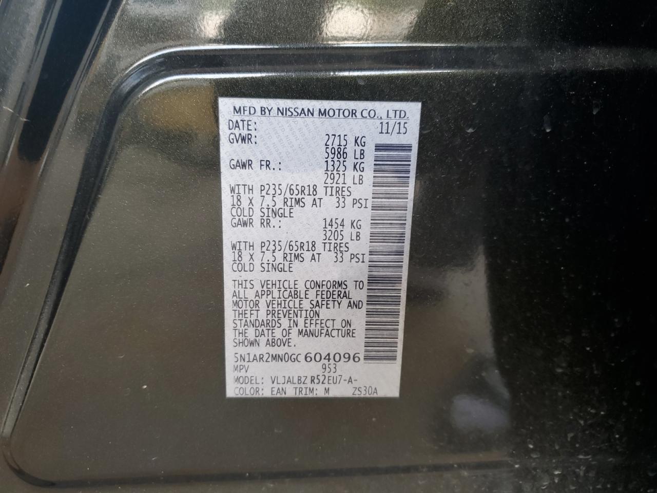 - ВИН: 5N1AR2MN0GC******