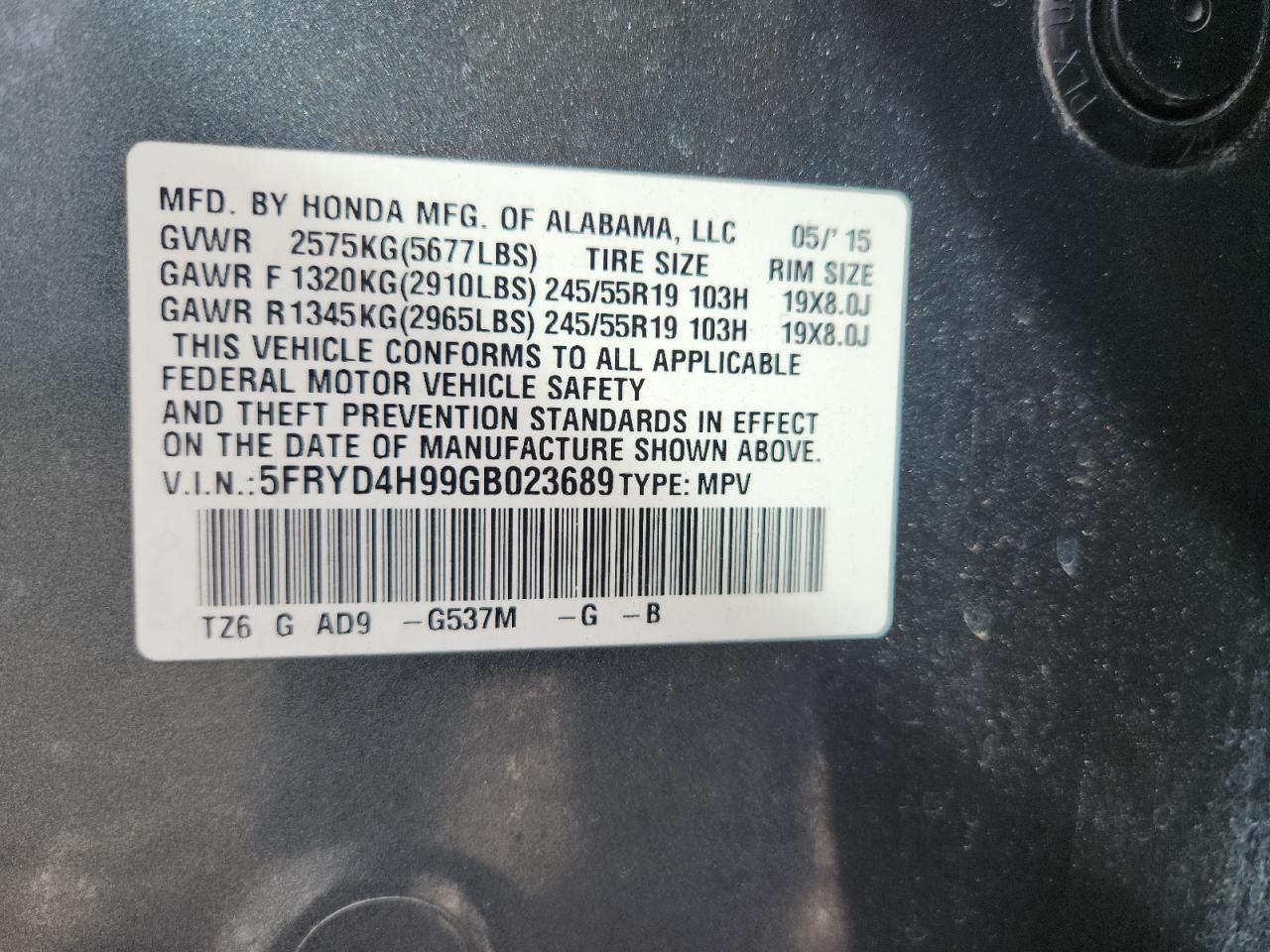 - ВИН: 5FRYD4H99GB******