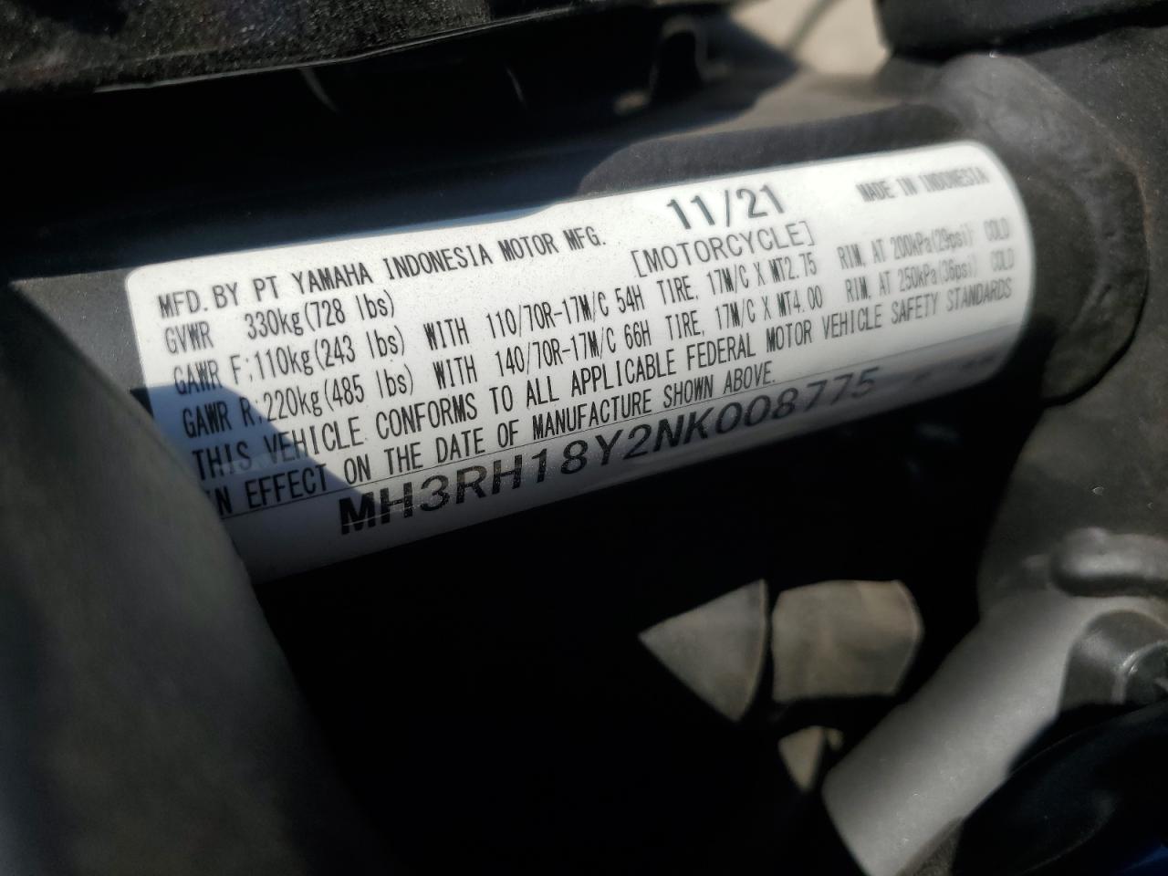 2022 YAMAHA YZFR3 A из США