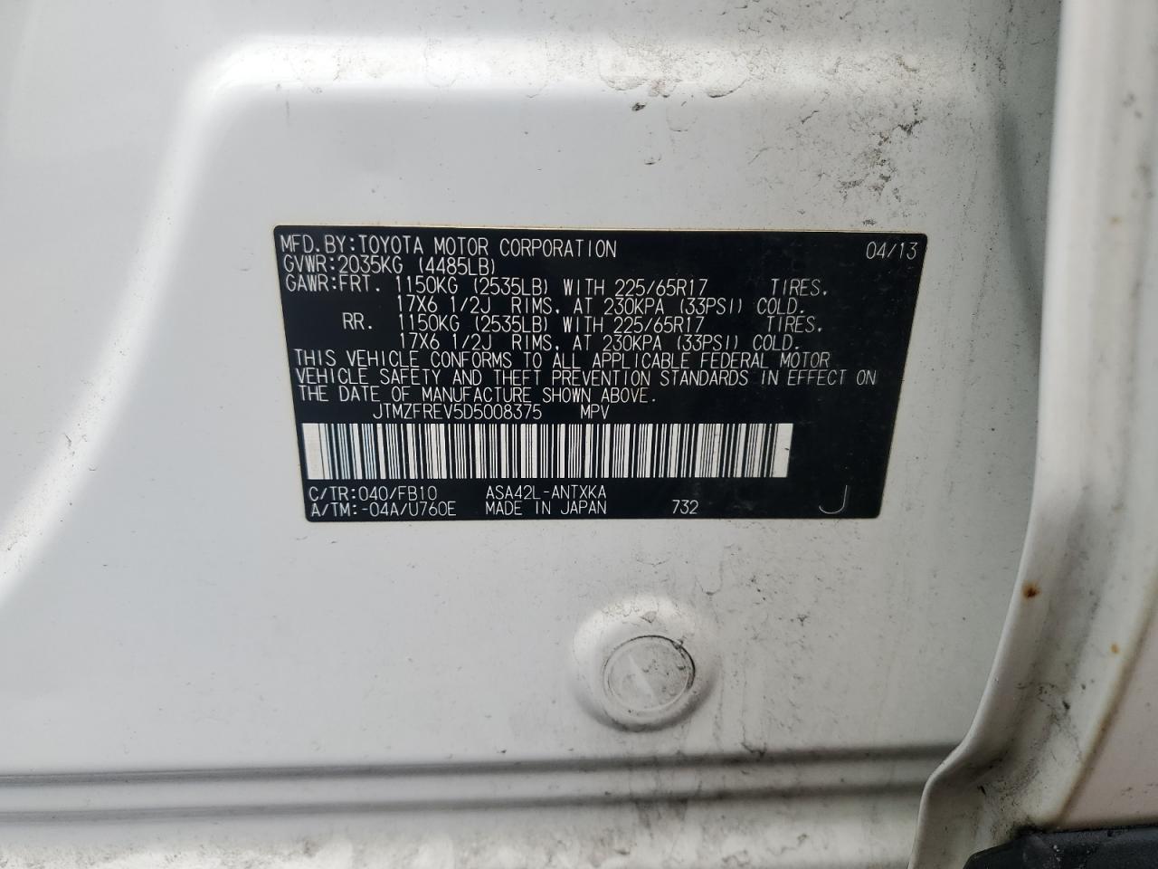 - ВИН: JTMZFREV5D5******