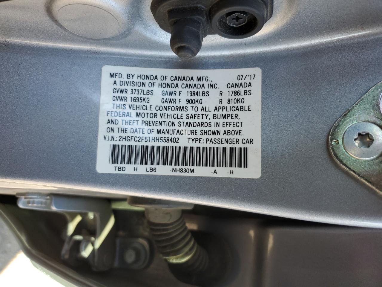 - ВИН: 2HGFC2F51HH******