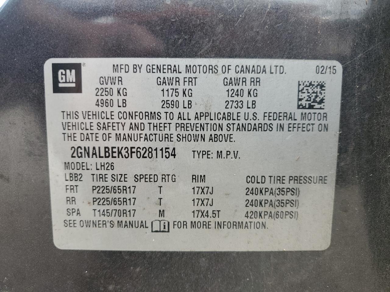 - ВИН: 2GNALBEK3F6******