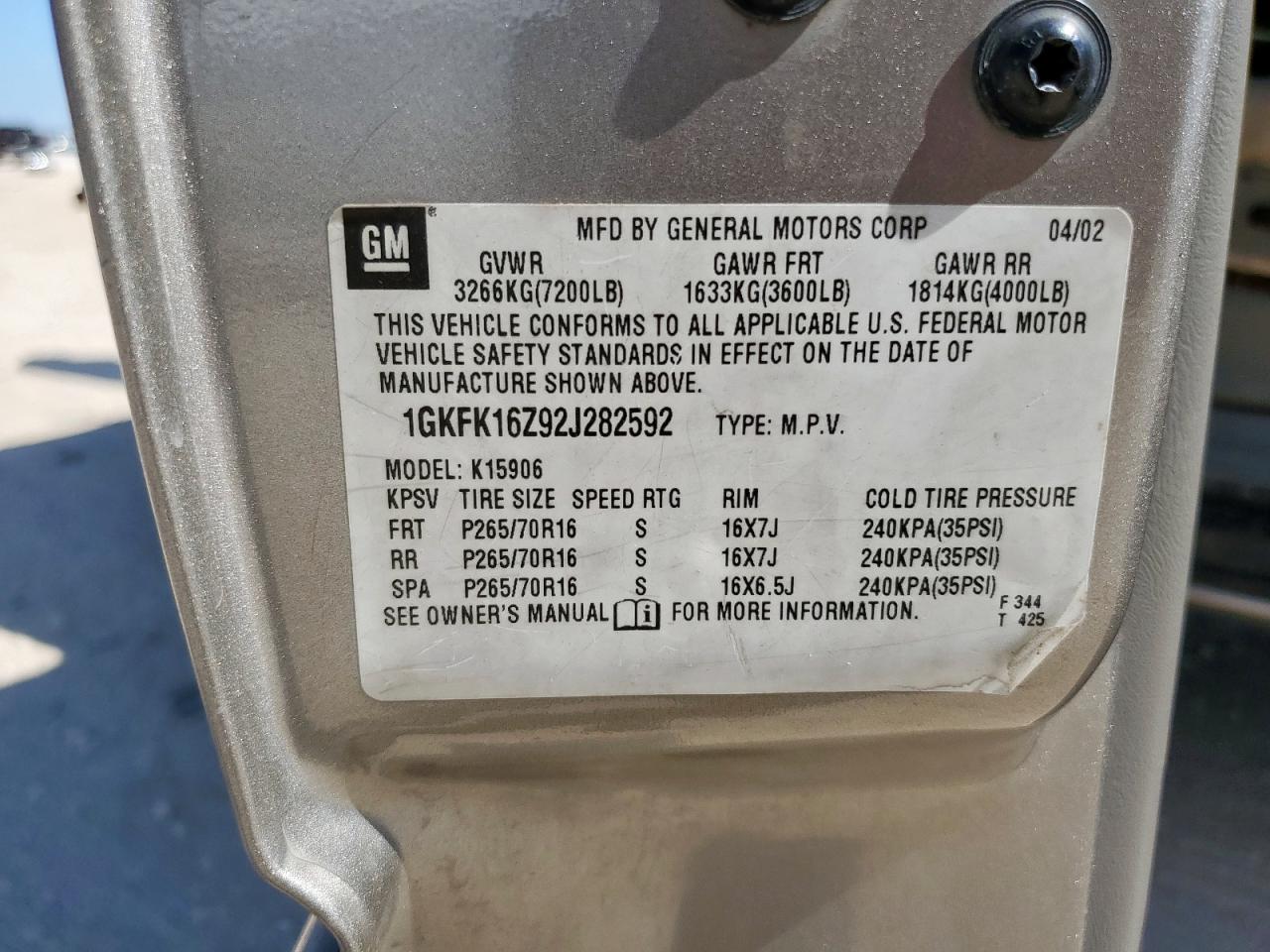 - ВИН: 1GKFK16Z92J******