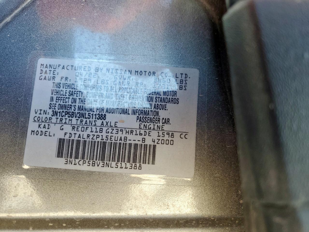 - ВИН: 3N1CP5BV3NL******