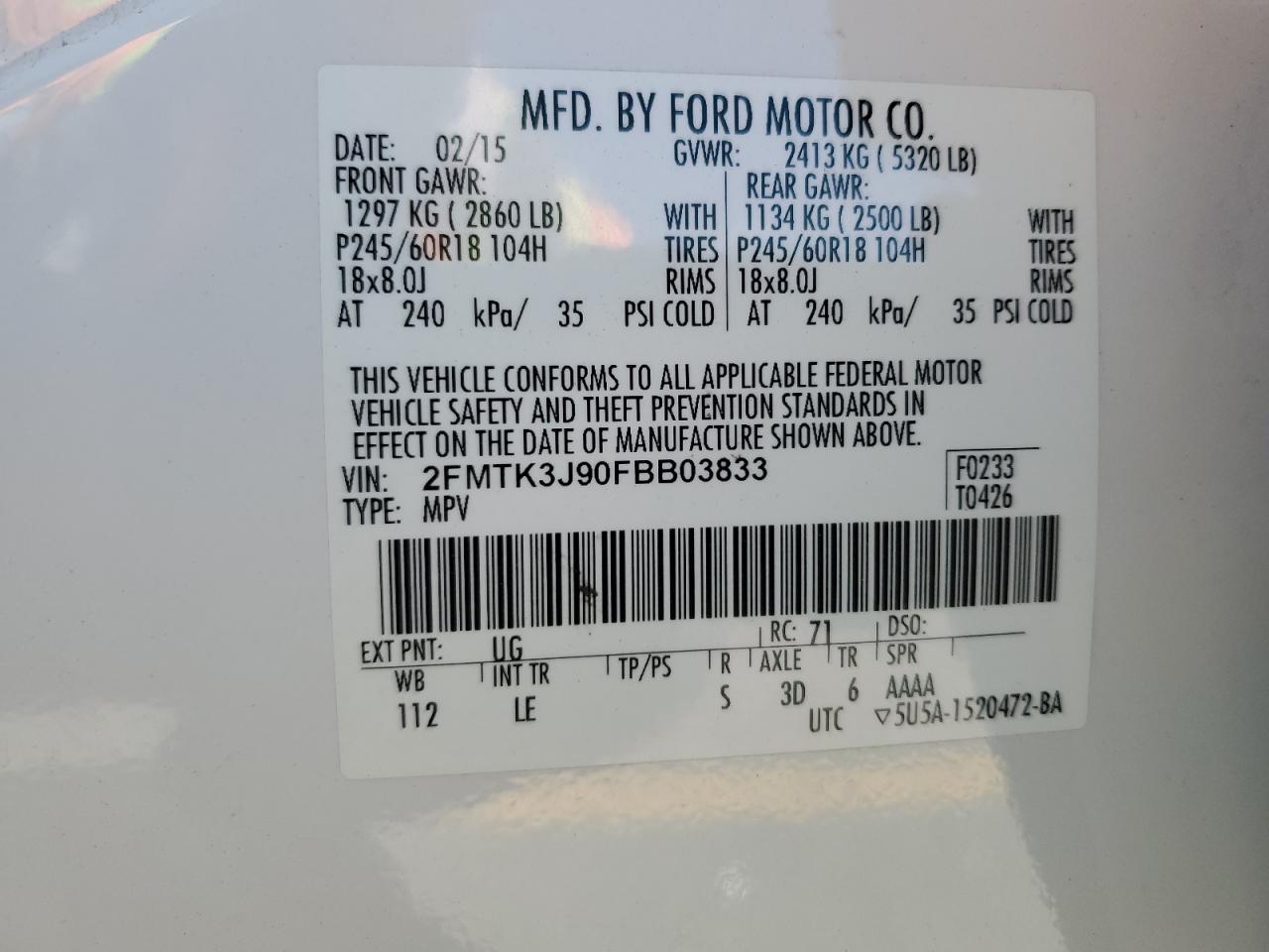 - ВИН: 2FMTK3J90FB******