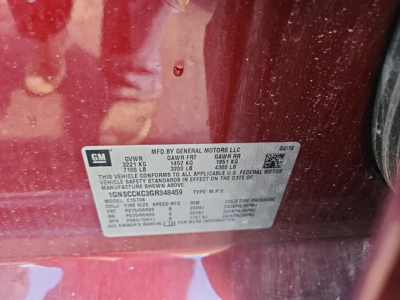 - ВИН: 1GNSCCKC3GR******