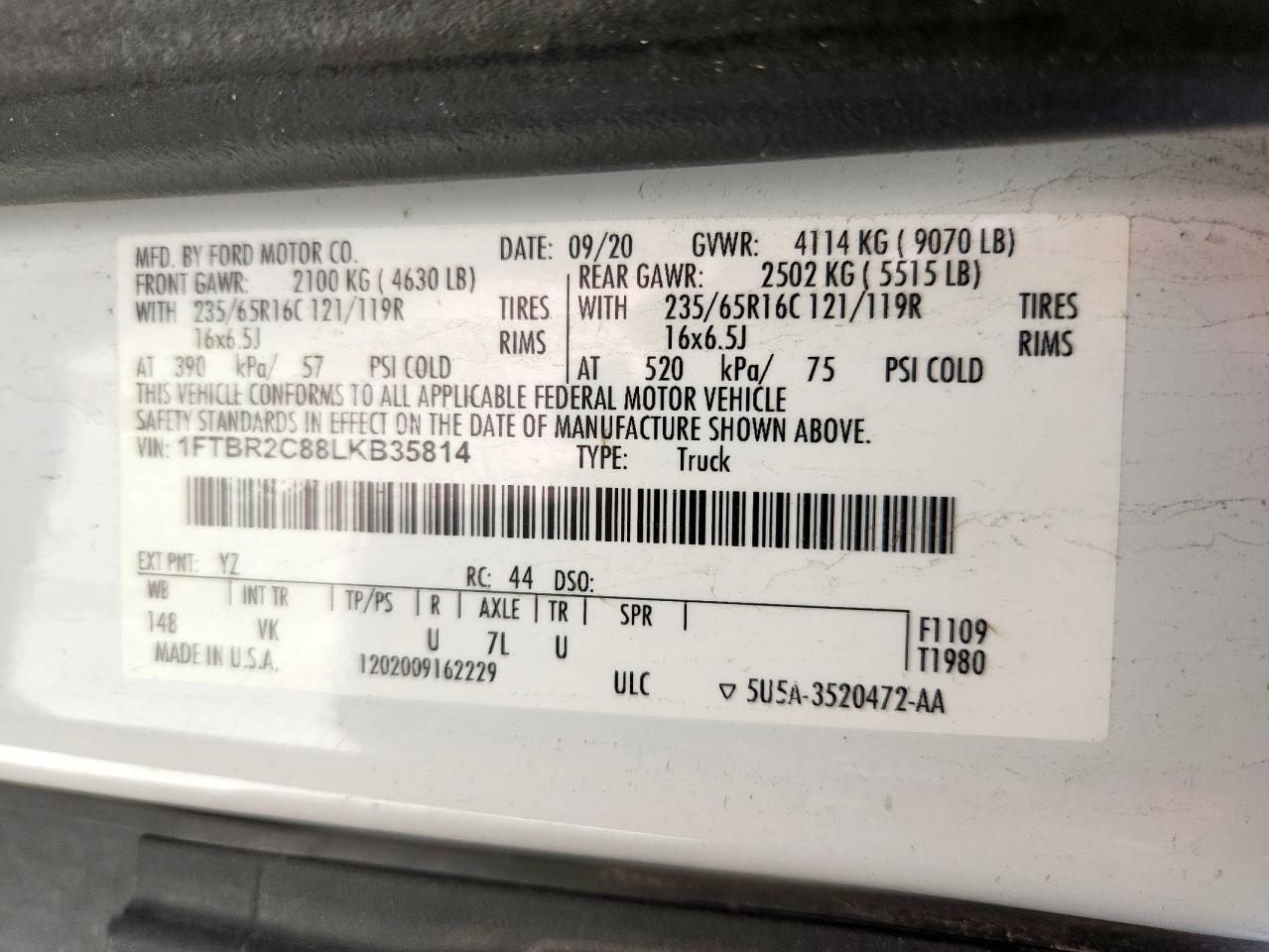 - ВИН: 1FTBR2C88LK******