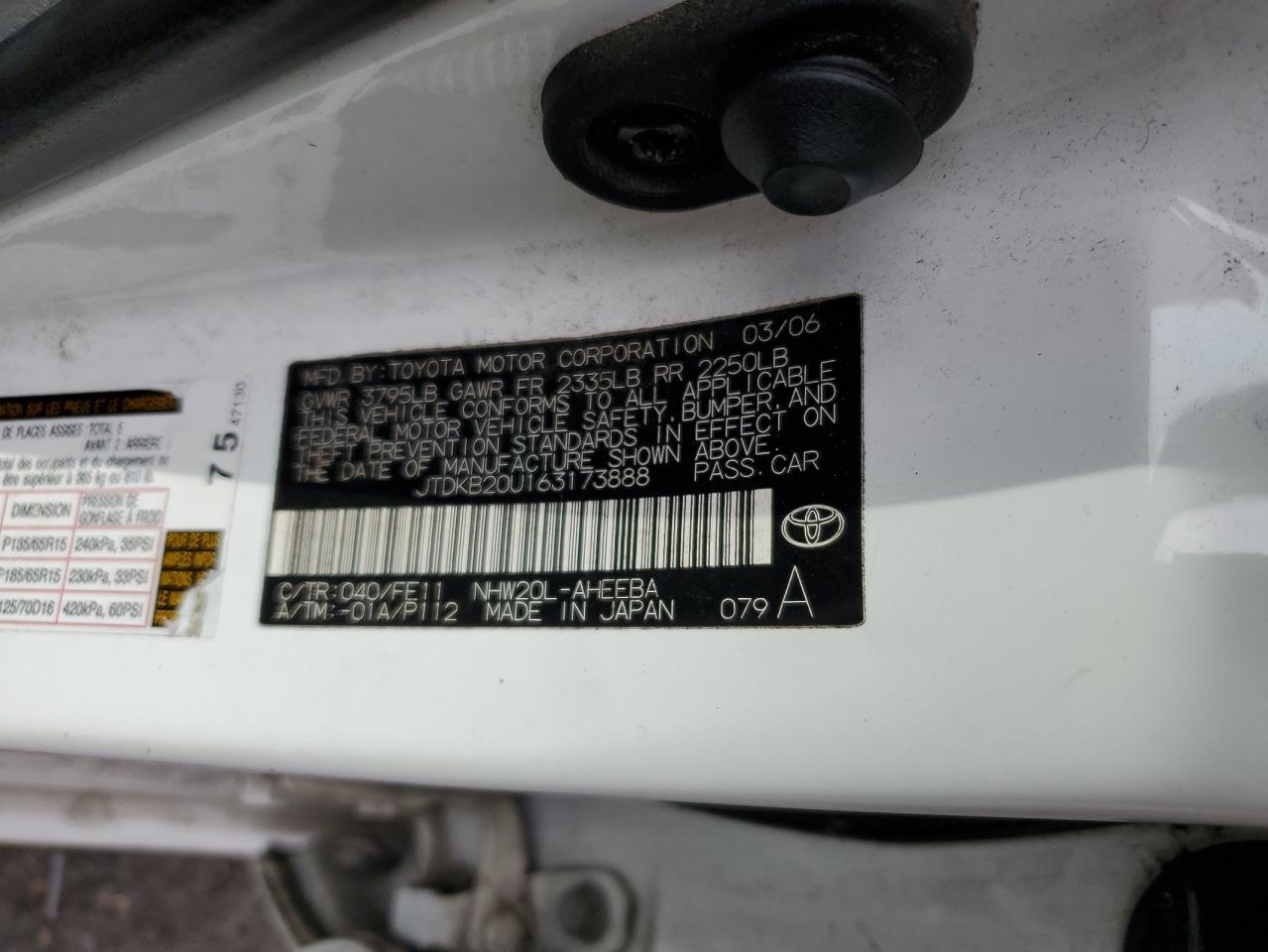 - ВИН: JTDKB20U163******
