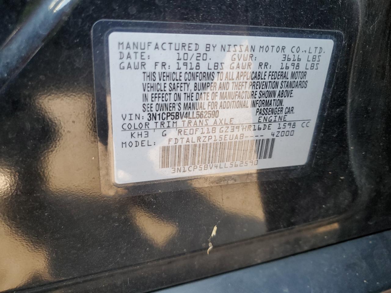 - ВИН: 3N1CP5BV4LL******