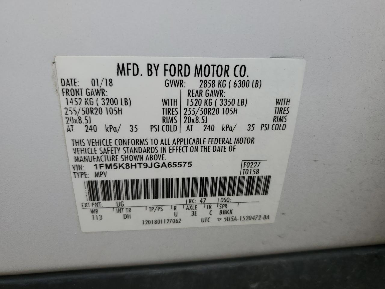 - ВИН: 1FM5K8HT9JG******