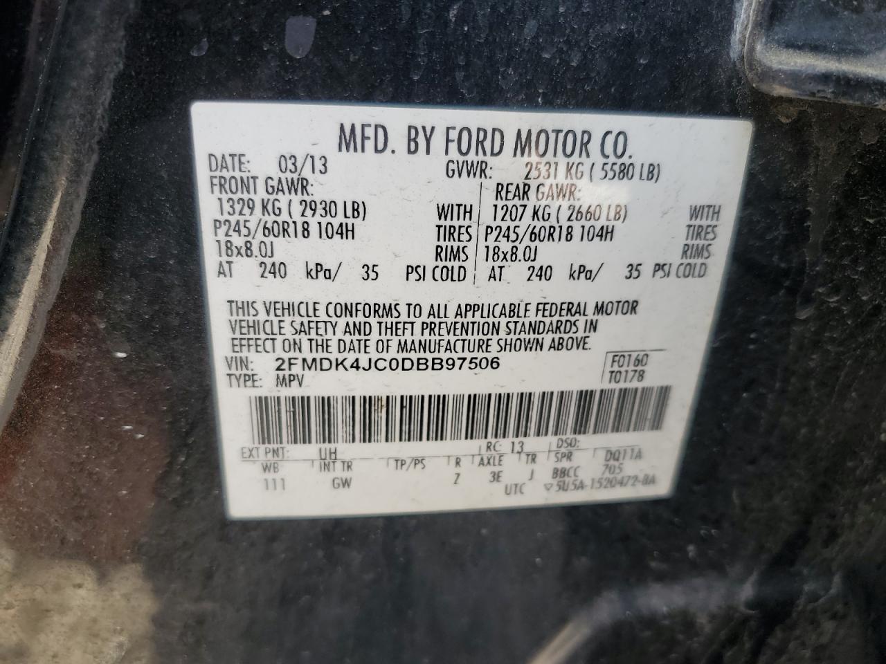 - ВИН: 2FMDK4JC0DB******