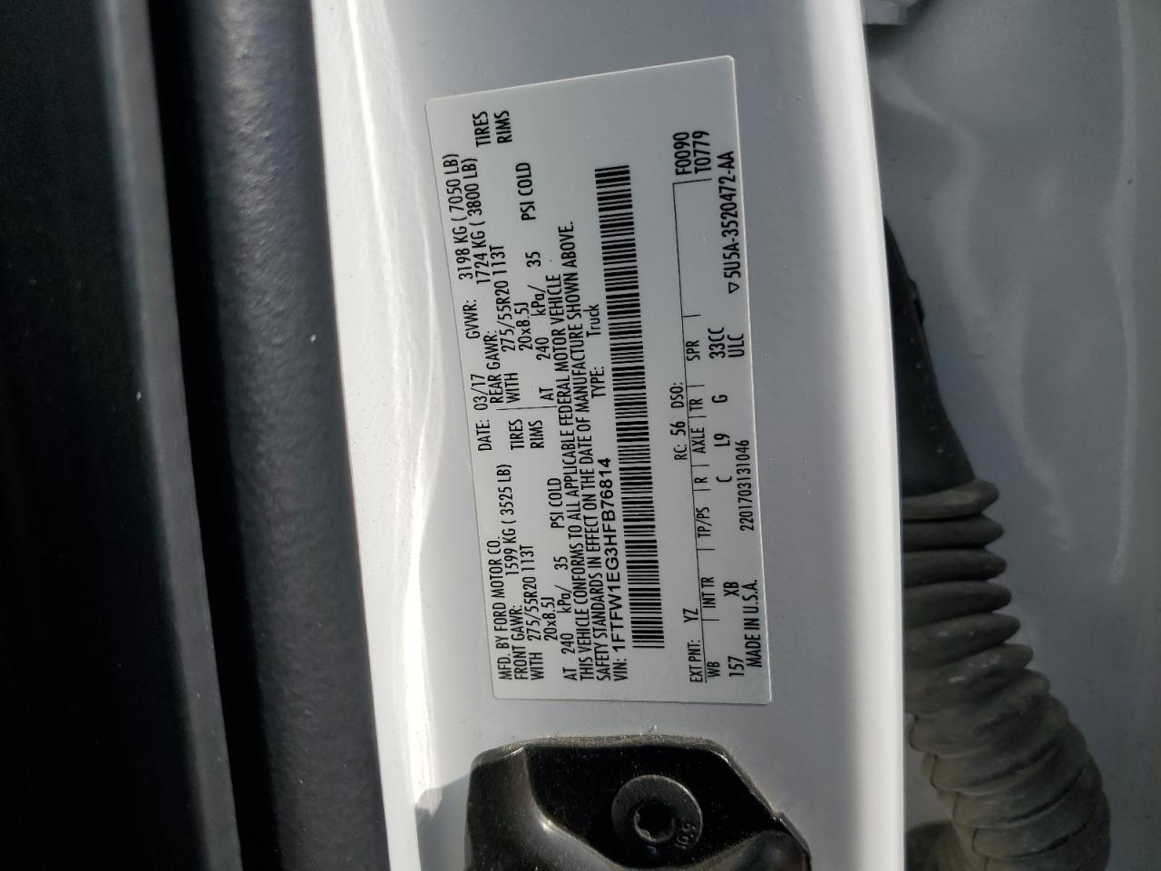 - ВИН: 1FTFW1EG3HF******