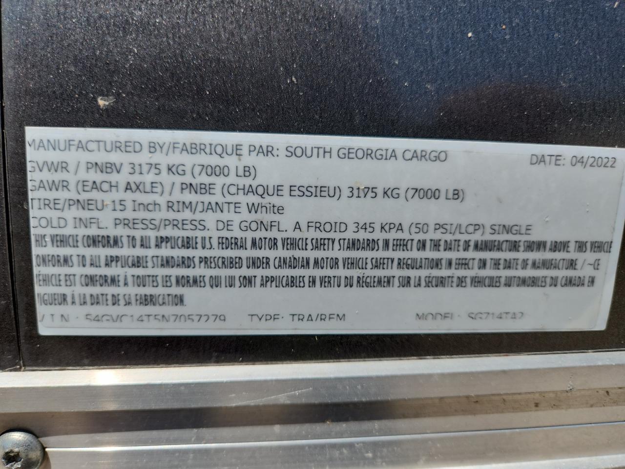 2022 SOUTH GEORGIA SG714TA2 ENCLOSED CARGO TRAILER из США