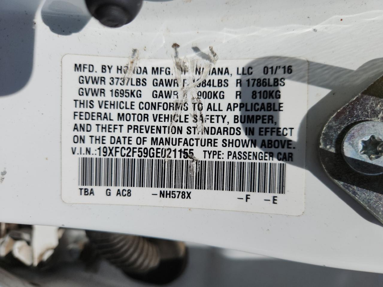 - ВИН: 19XFC2F59GE******