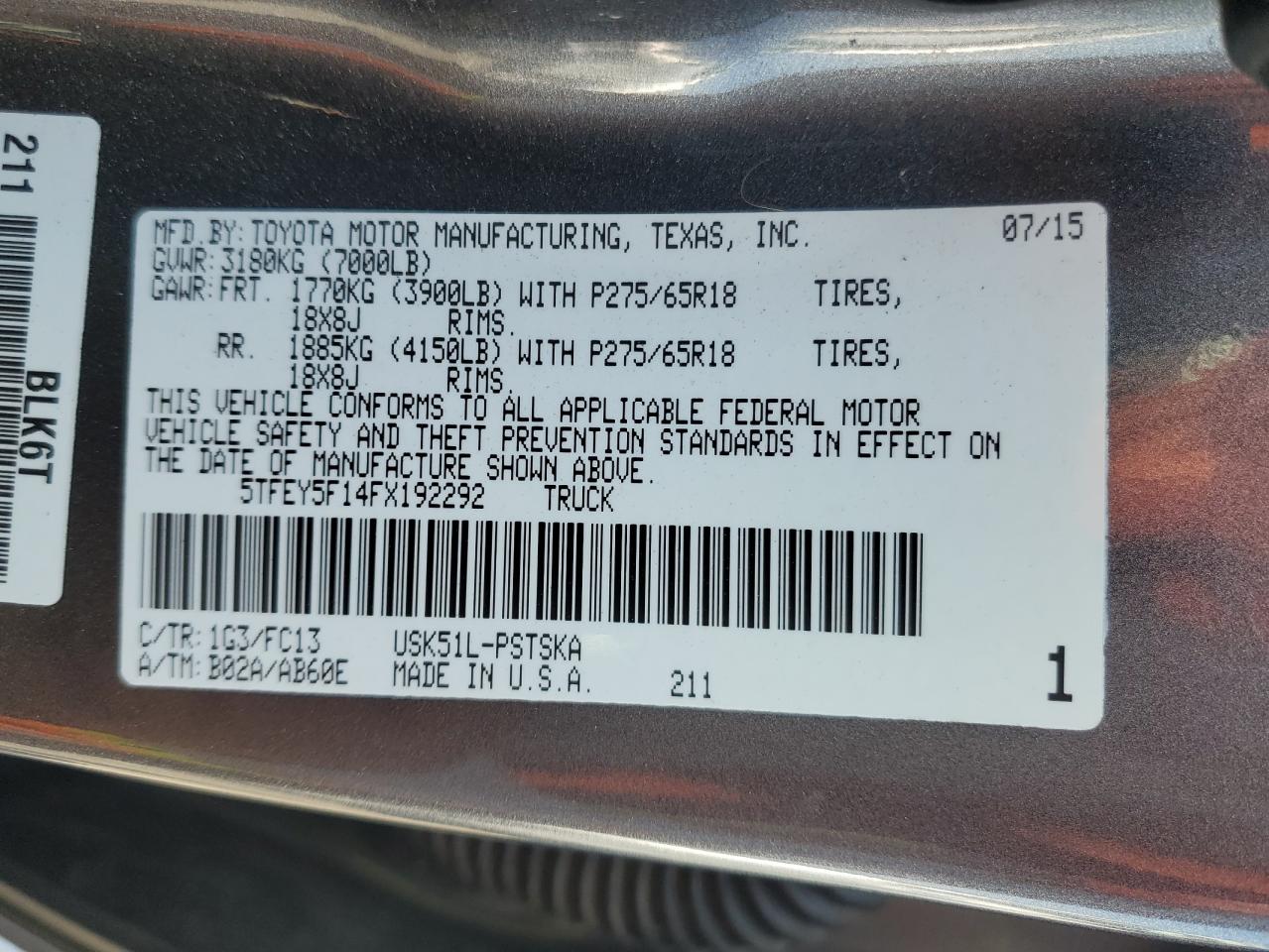 - ВИН: 5TFEY5F14FX******
