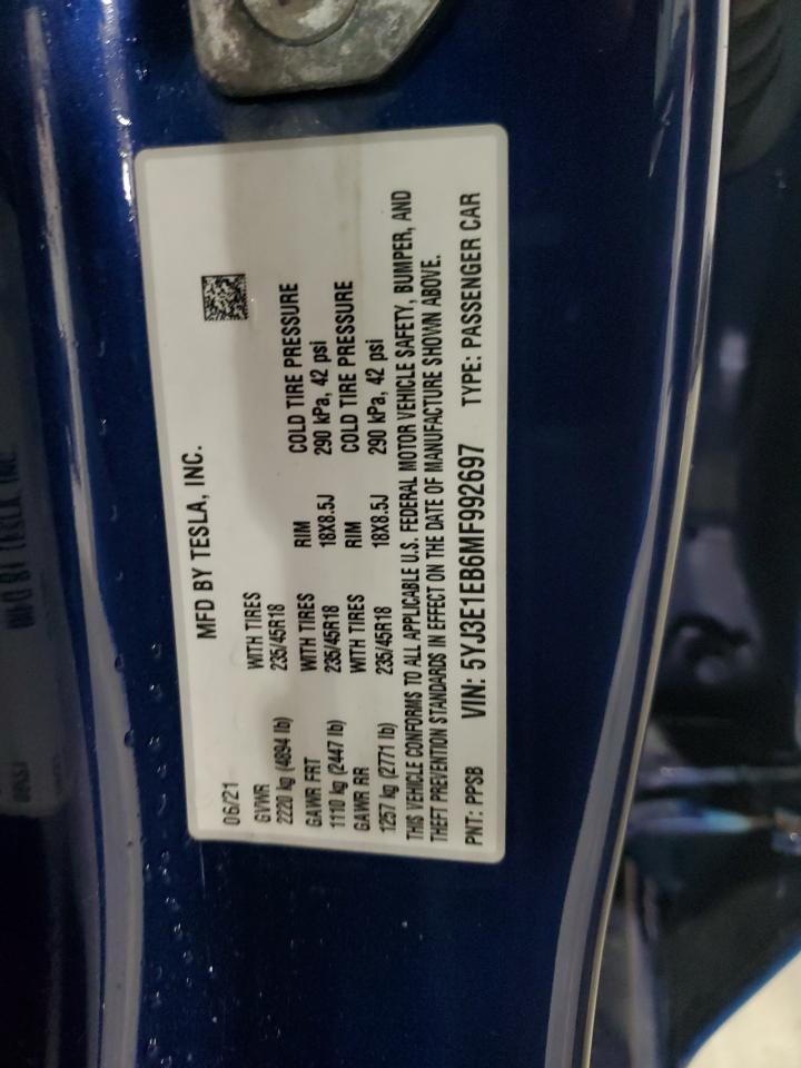 - ВИН: 5YJ3E1EB6MF******