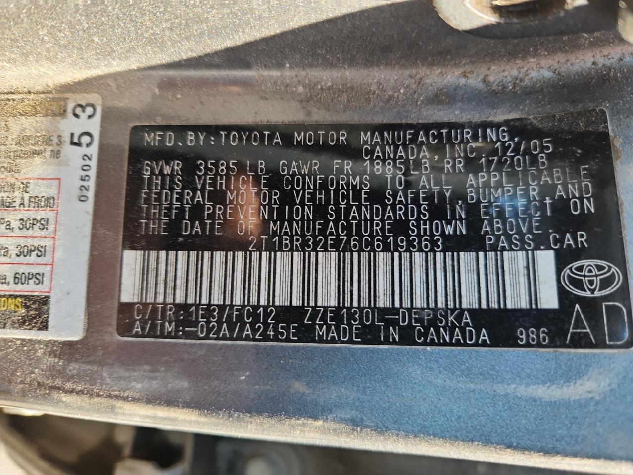 - ВИН: 2T1BR32E76C******