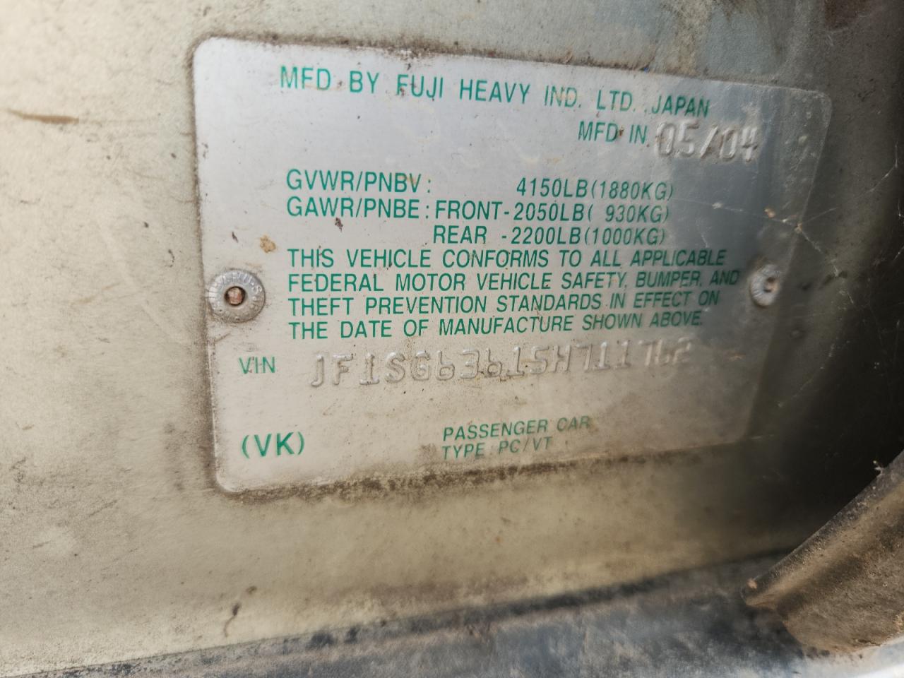- ВИН: JF1SG63615H******