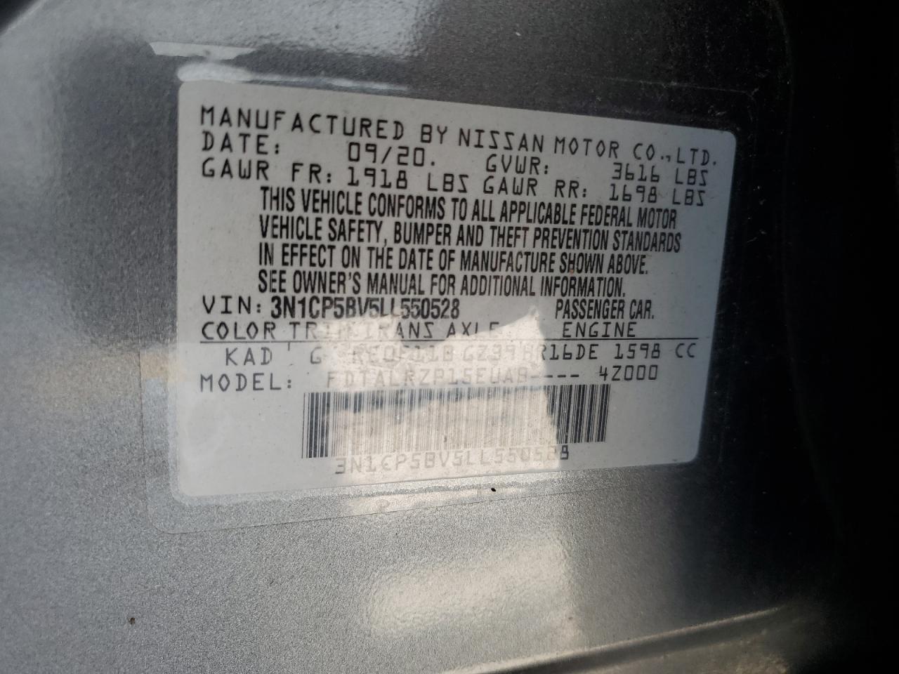 - ВИН: 3N1CP5BV5LL******