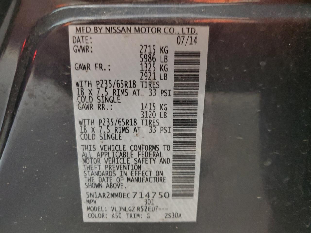 - ВИН: 5N1AR2MM0EC******