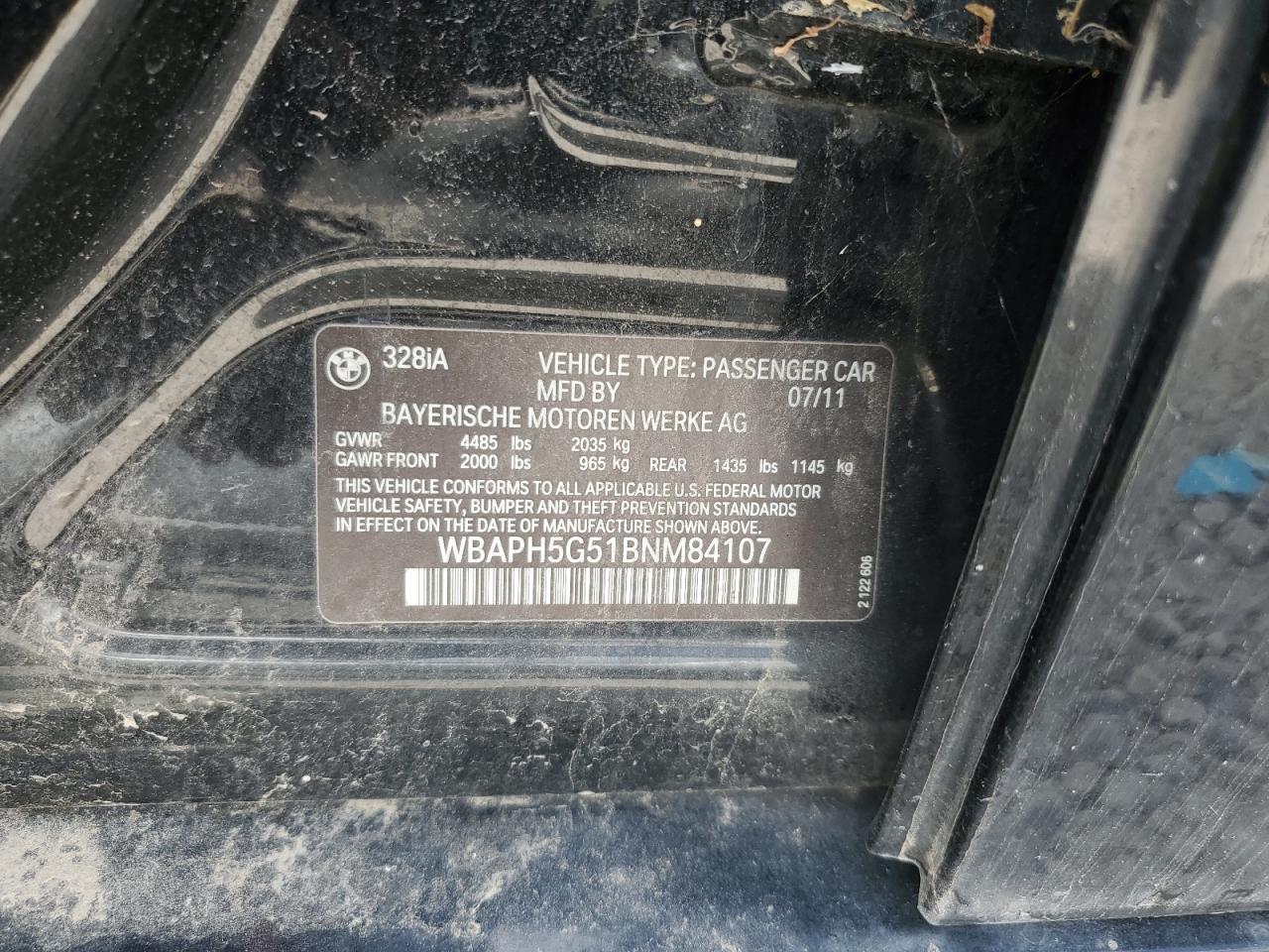 - ВИН: WBAPH5G51BN******