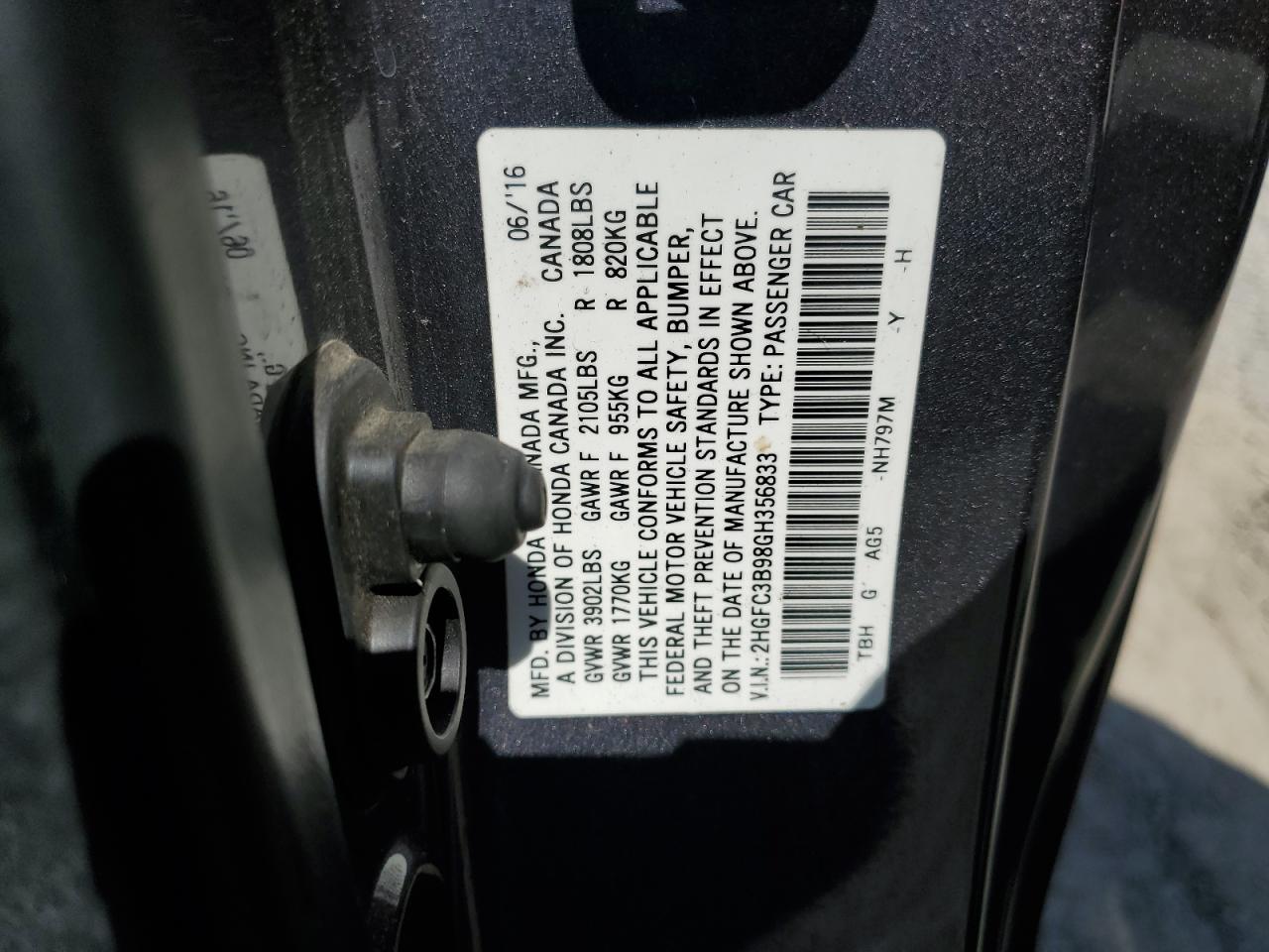 - ВИН: 2HGFC3B98GH******