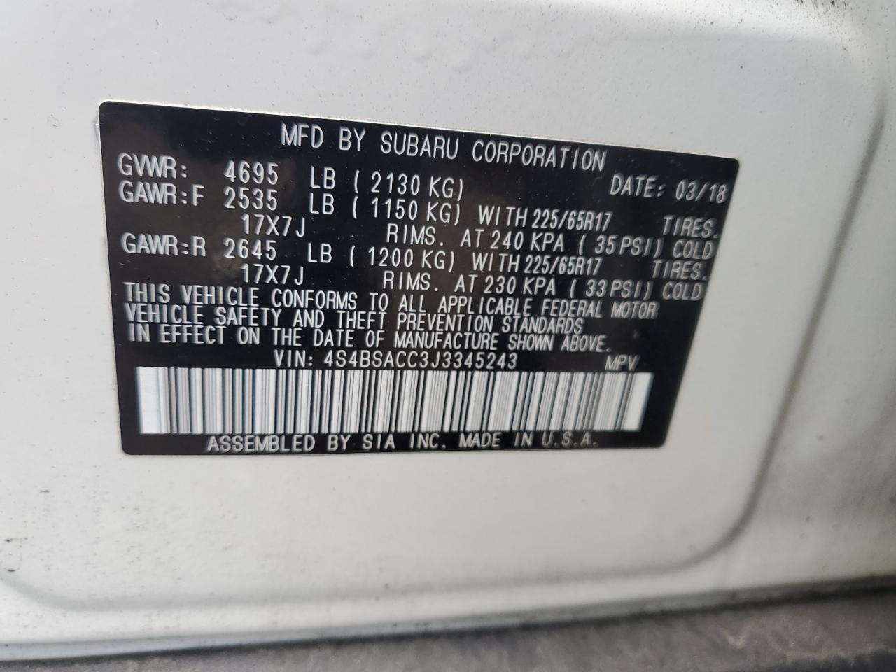 - ВИН: 4S4BSACC3J3******