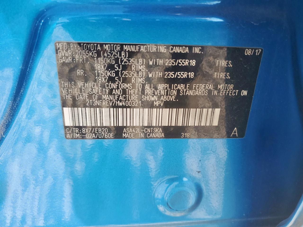 - ВИН: 2T3NFREV7HW******