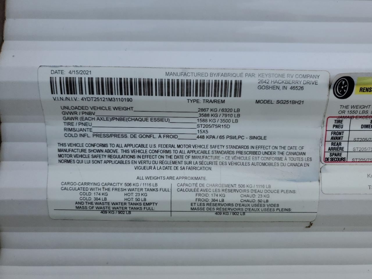 - ВИН: 4YDT25121M3******