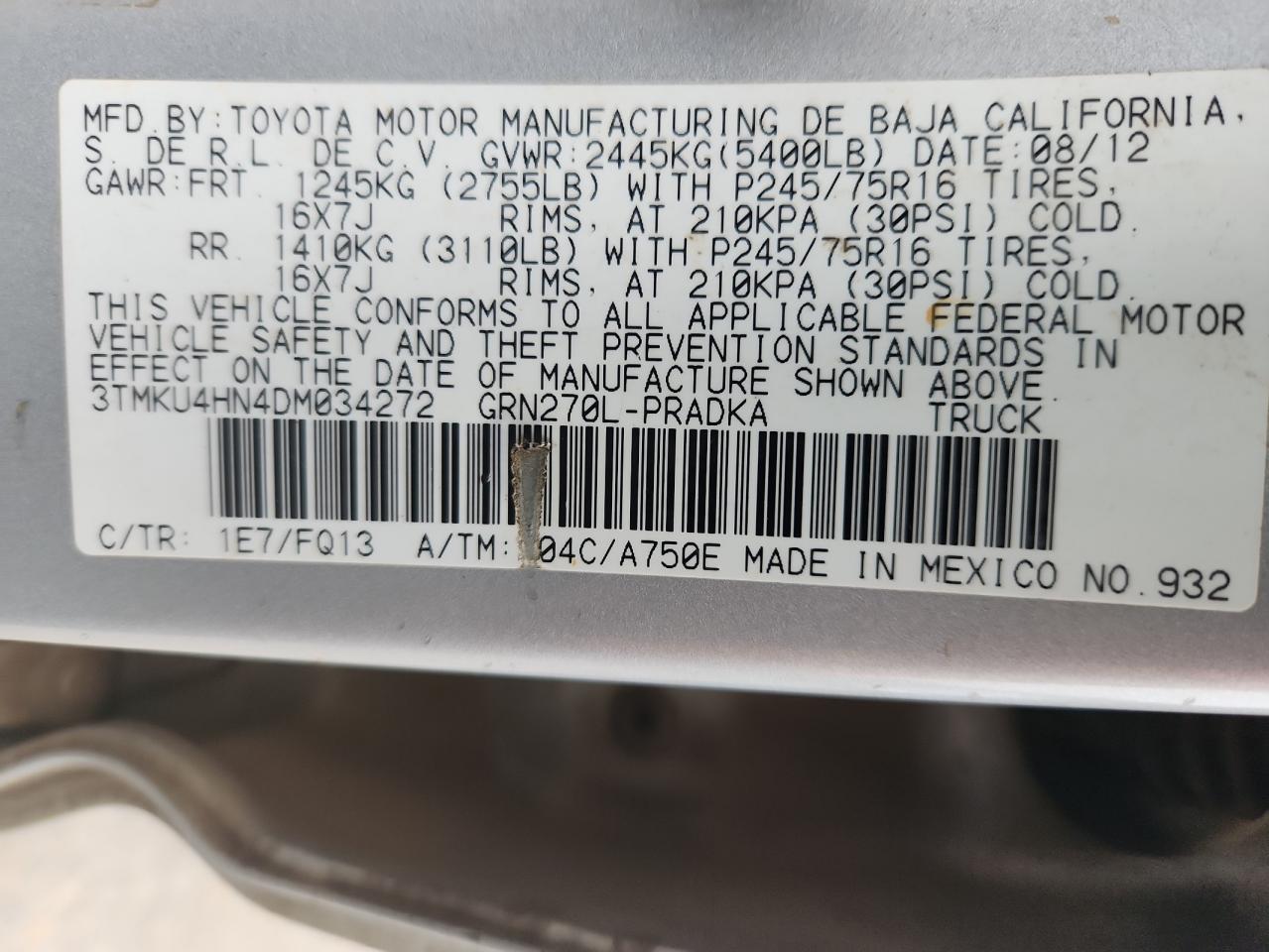 - ВИН: 3TMKU4HN4DM******