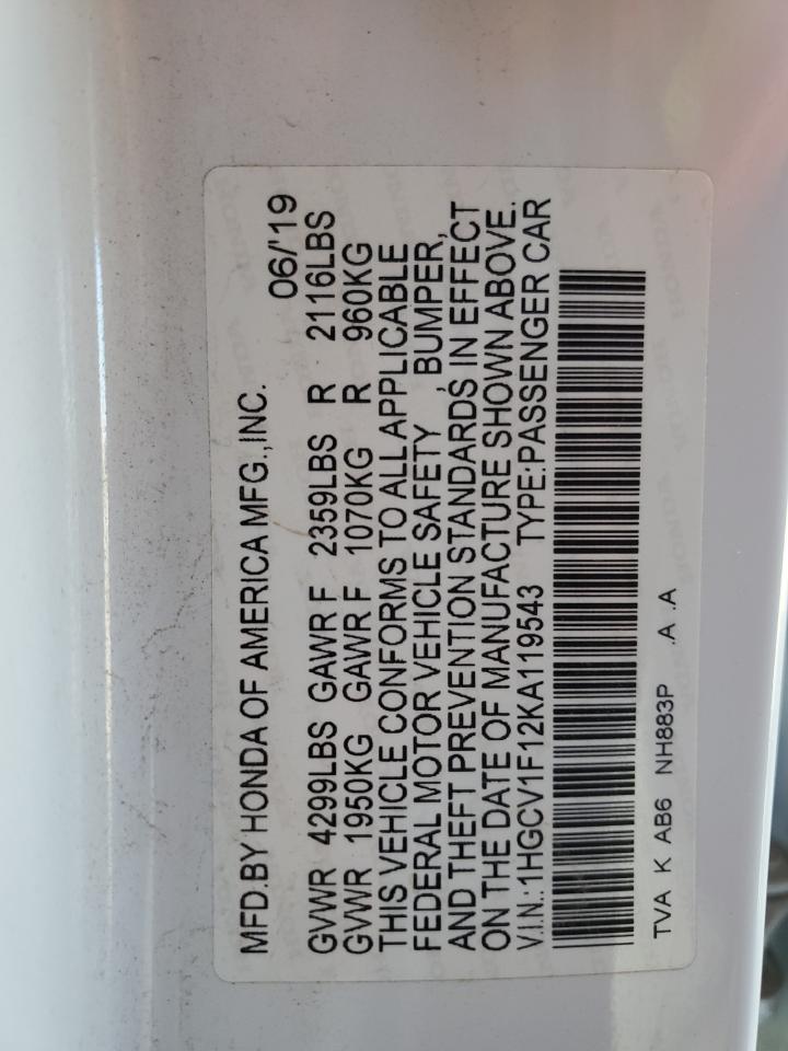 - ВИН: 1HGCV1F12KA******