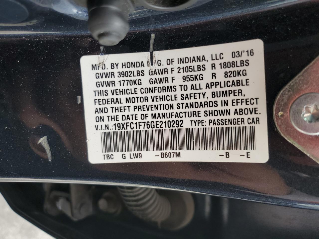 - ВИН: 19XFC1F76GE******
