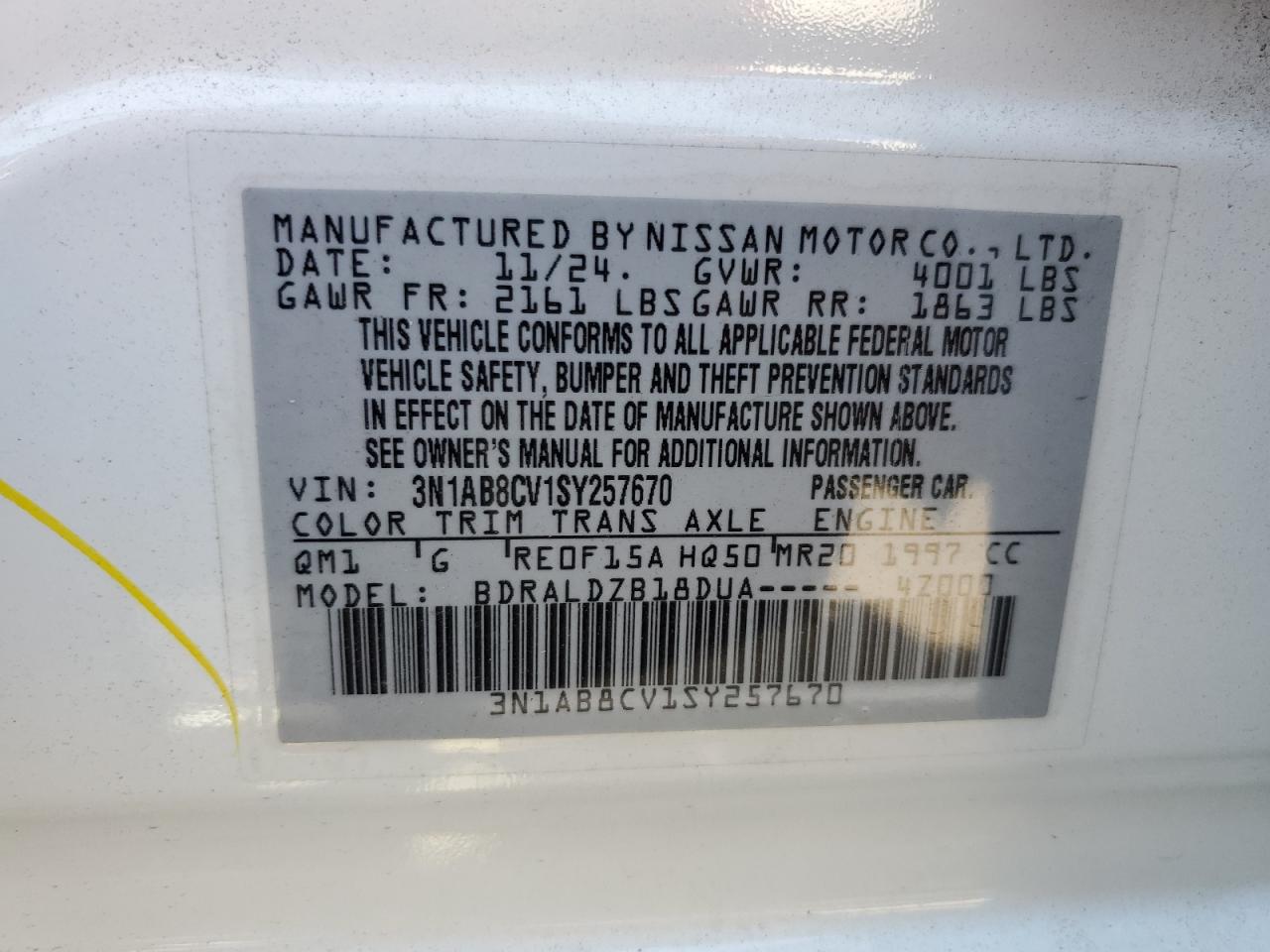 - ВИН: 3N1AB8CV1SY******