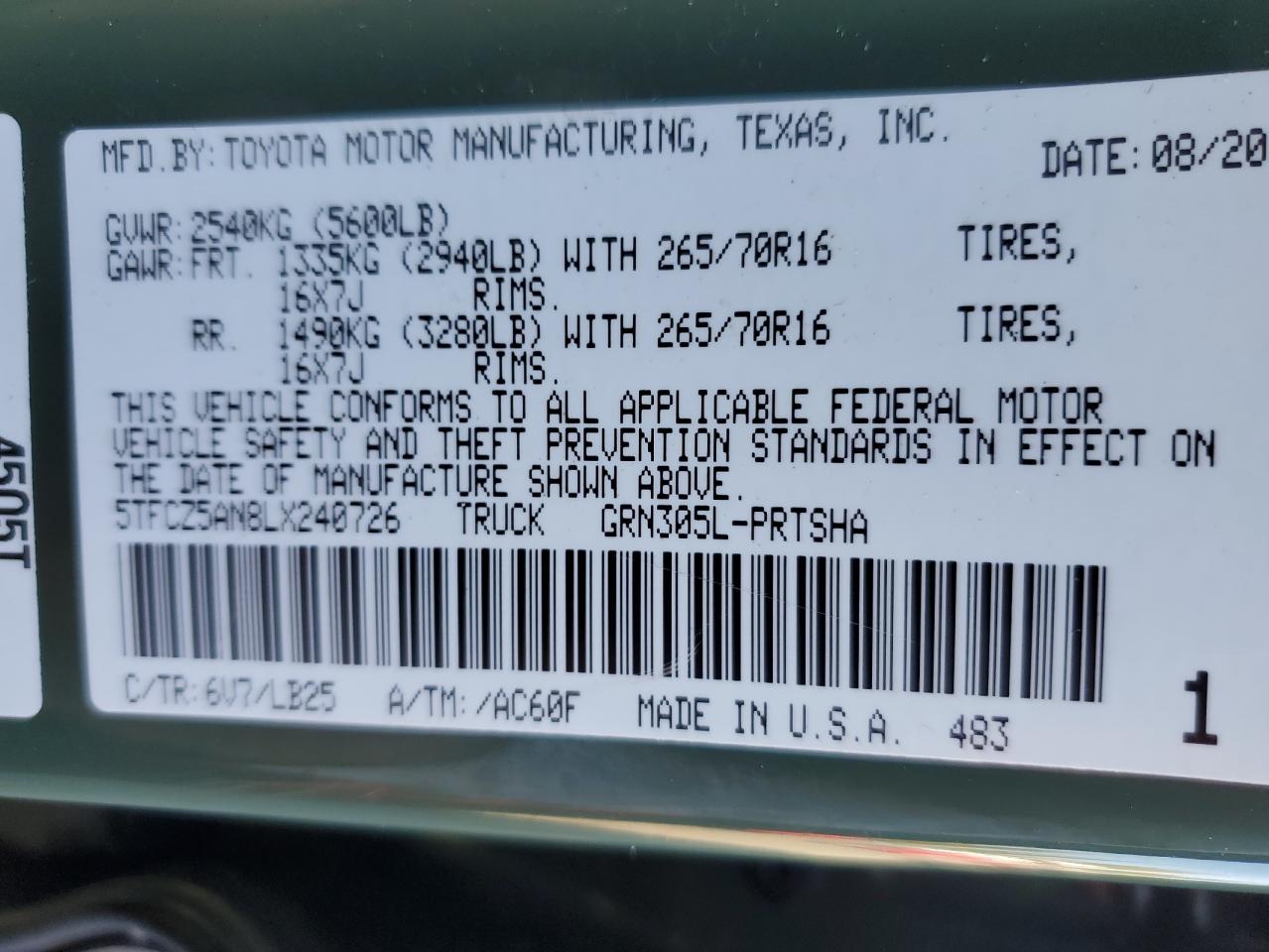 - ВИН: 5TFCZ5AN8LX******