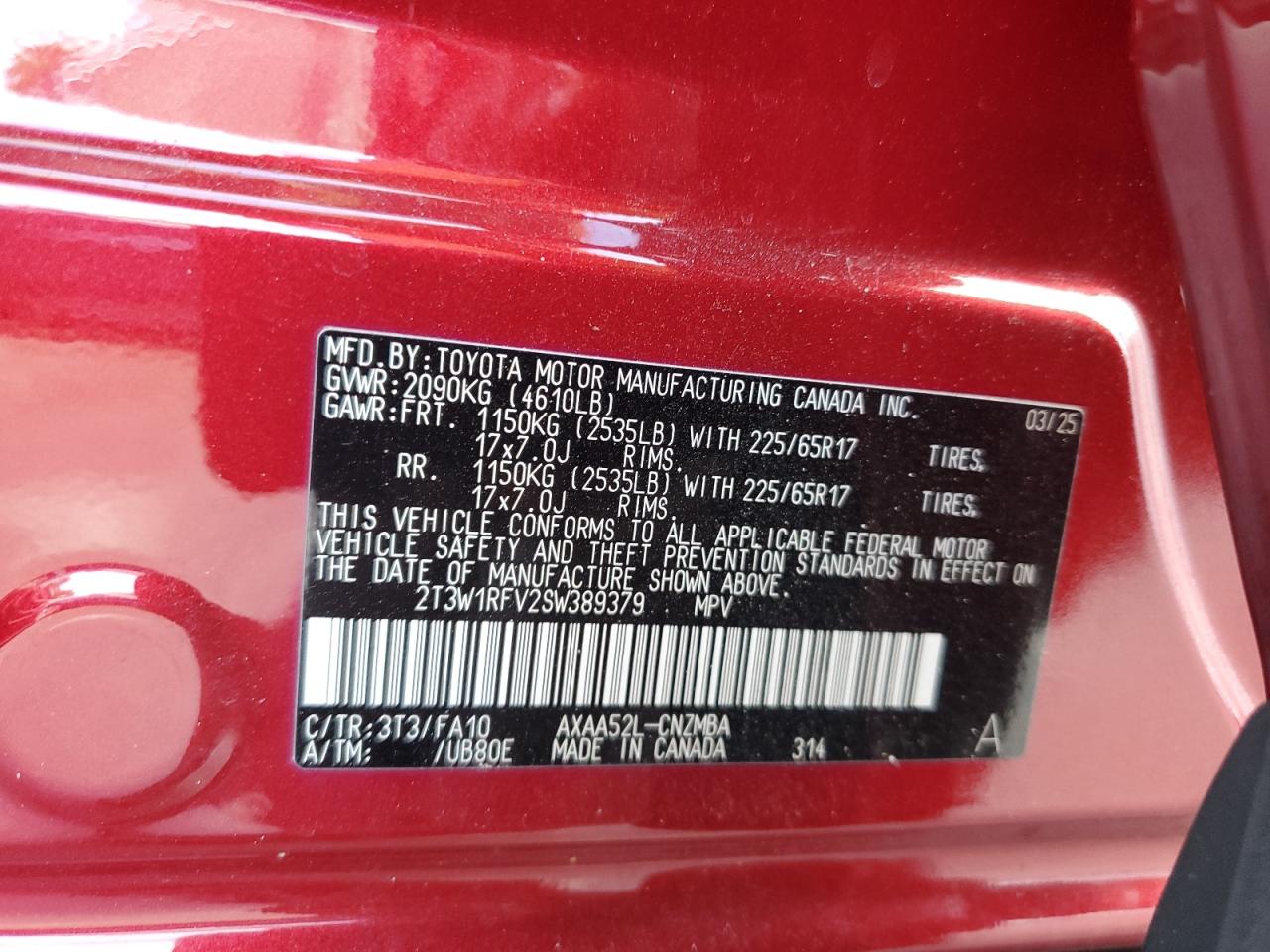 - ВИН: 2T3W1RFV2SW******